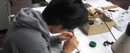 このような測定プローブ(細長い棒)が20本近くあります。 基本的に手作りです。最先端研究では、既製品では対応できないことが多く、状況によっては金属工作や電子工作が必要になります。金属工作では、旋盤・ボール盤・バンドソーなどを利用して加工し、銀ロウという方法で金属同士を接合します。扱う金属は銅、真鍮、ステンレスです。