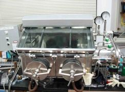 液体ヘリウムフリーの超伝導磁石。横磁場高均一ヘリウムフリー磁石では北大についで2台目。ヘリウム循環型では世界で1号機。3He冷凍機と組み合わせ最低温度0.45 Kを達成。