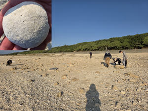 | すぐそばにある知念層も観察.移動して,港川遺跡と港川層のアワ石を観察. | |
