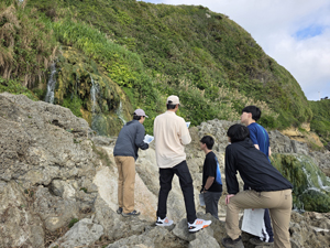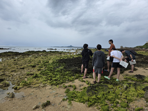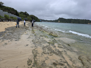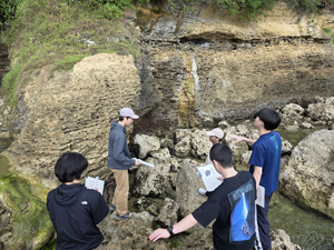 | 今年の白石研巡検は,沖縄の付加体と炭酸塩岩などを観察した.まずはジョン万ビーチで硬骨海綿を観察したが,数はかなり少なかった.その後,ギーザバンダの滝でトゥファを観察. | |