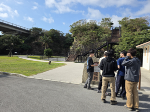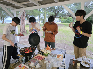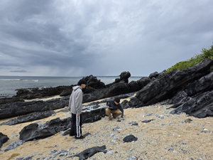 | 海洋博記念公園に露出する今帰仁層では,アンモナイトを観察.3日目は宿でBBQ. | |