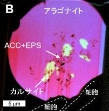 Cyanobacteria, oxygenic photosynthetic bacteria, form microbialites such as stromatolites and thrombolites depending on their calcification style. It was known that the presence or absence of calcification is controlled by the chemical properties of EPS secreted by cyanobacteria, but the reasons for the differences in the calcification style were not well understood.