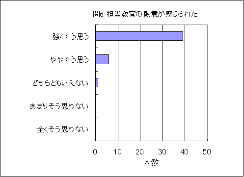 問6. 担当教官の熱意が感じられた (この授業の平均値 4.8) (数3.8,物3.7,化3.7,生4.0,地3.4,理3.7) |