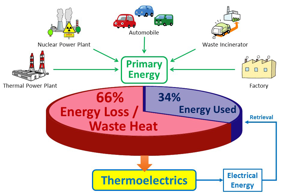 Energy derived from natural resources—such as petroleum, coal, and natural gas, known as primary energy—is widely used in power plants, automobiles, industrial facilities, and waste incineration systems. However, nearly two‑thirds of this energy is ultimately released as heat and dissipated into the environment without being effectively utilized.