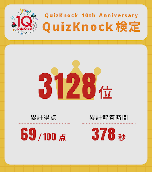 昨夜の 【QuizKnock検定】 は楽しかった〜。