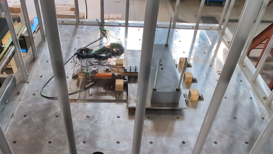 修士論文の研究内容であるくぎ接合部の動的実験を実施しています。