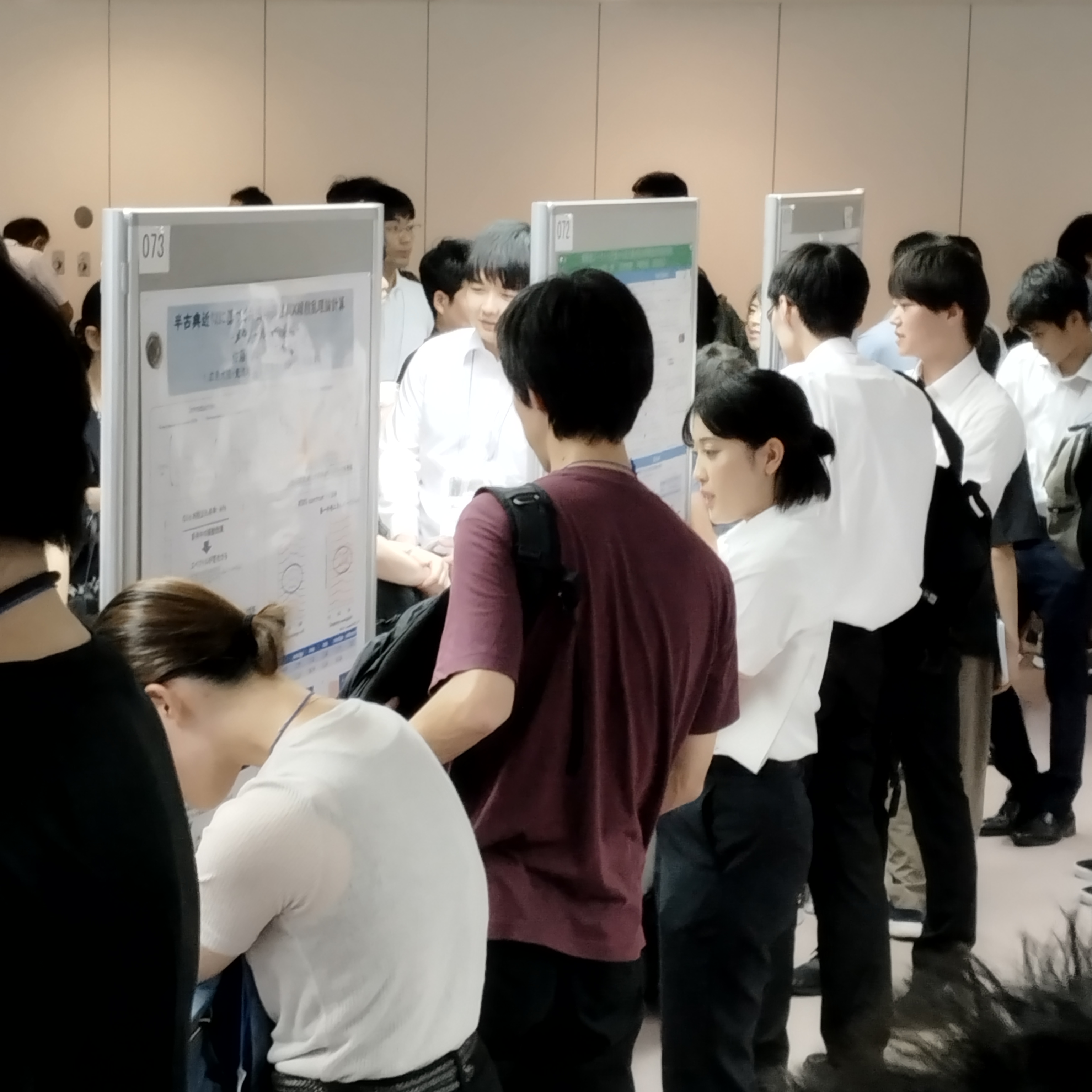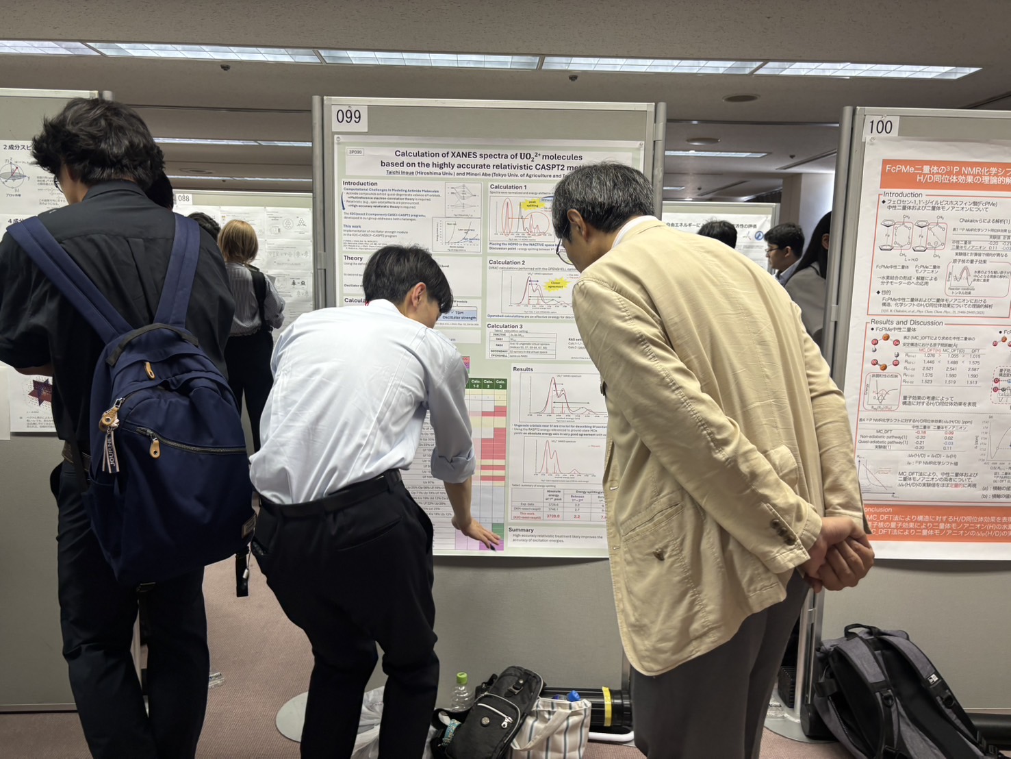 - ●岡田さん,佐藤あさん,佐藤ひさん,尾関君が第19回分子科学討論会でポスター発表しました。(Sep. 2025)
