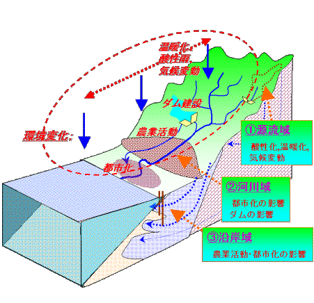 流域環境研究:流域環境に及ぼす環境変化の影響を評価すること。