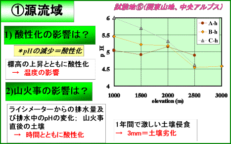 1) 土壌の酸性化問題;酸性雨の影響、自然酸性化機構(化学的風化)、熱帯地域*1