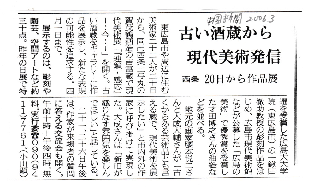 企画展「連鎖・感応」展 2006 賀茂鶴酒造株式会社 吉富蔵敷地内(東広島市) 2006年3月20日(月)~4月1日(土)