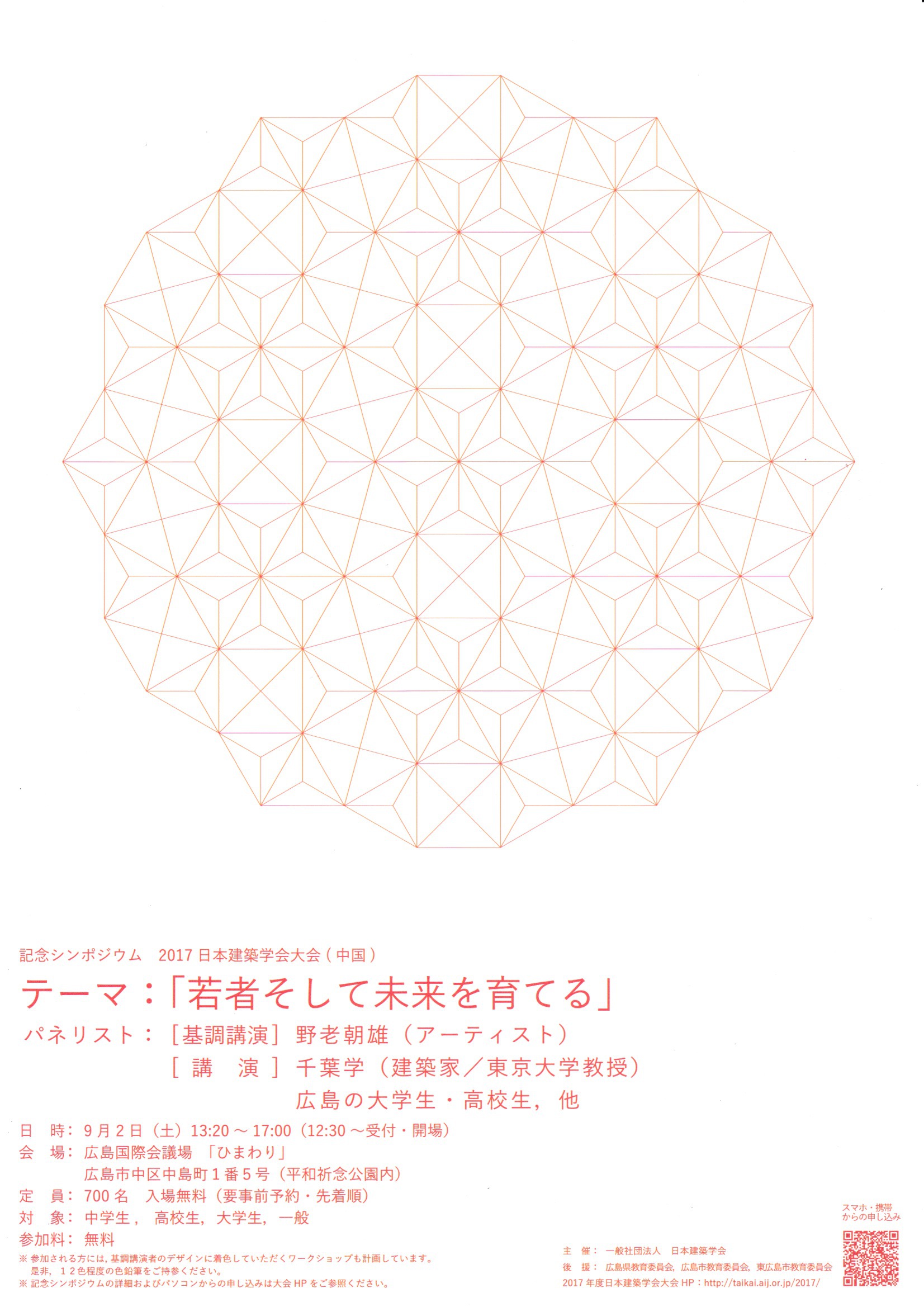 今年9月、広島で開催される「2017日本建築学会大会(中国)」では、「若者そして未来を考える」というテーマで、アーティストの野老朝雄さんが基調講演をされます。野老さんは、東京オリンピックのエンブレムをデザインした方で、本大会では、広島の大学生・高校生と交流する企画があるとのこと。