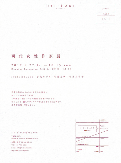 卒業生の中土井律子さんから、展覧会の案内が届きました。「現代女性作家展」2017年9月22日(金)〜10月15日(日)@ジルダールギャラリー(名古屋市)