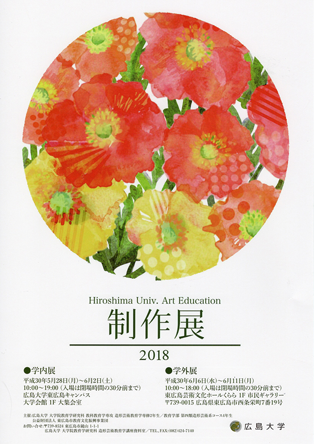 今年(平成30年度)も、制作展が開催されます。学内展は5月28日〜6月2日、学外展(@東広島芸術文化ホールくらら)は6月6日〜6月11日。プレ卒展(いわゆる模擬卒)として、毎年、学生が自主的に開催している本展は、来年の卒展の行方を占う上でも興味深い展覧会です。お近くの方、是非、足をお運びください。