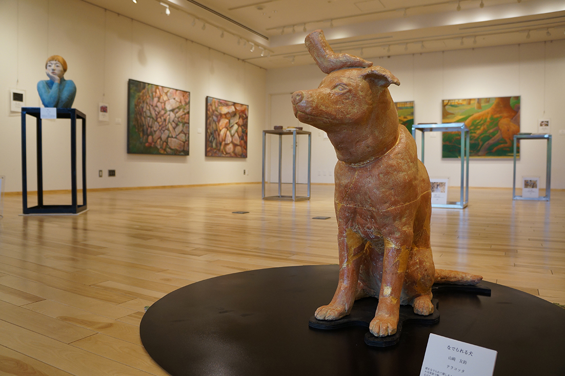 (写真右):『なでられる犬』山崎 友鈴(テラコッタ)