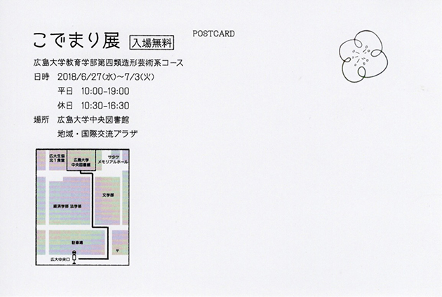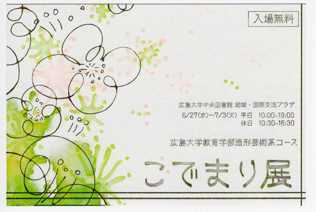 今年も開催されます「こでまり展」。広島大学教育学部造形芸術系コースに所属する学生有志の展覧会です。是非、足をお運びください!