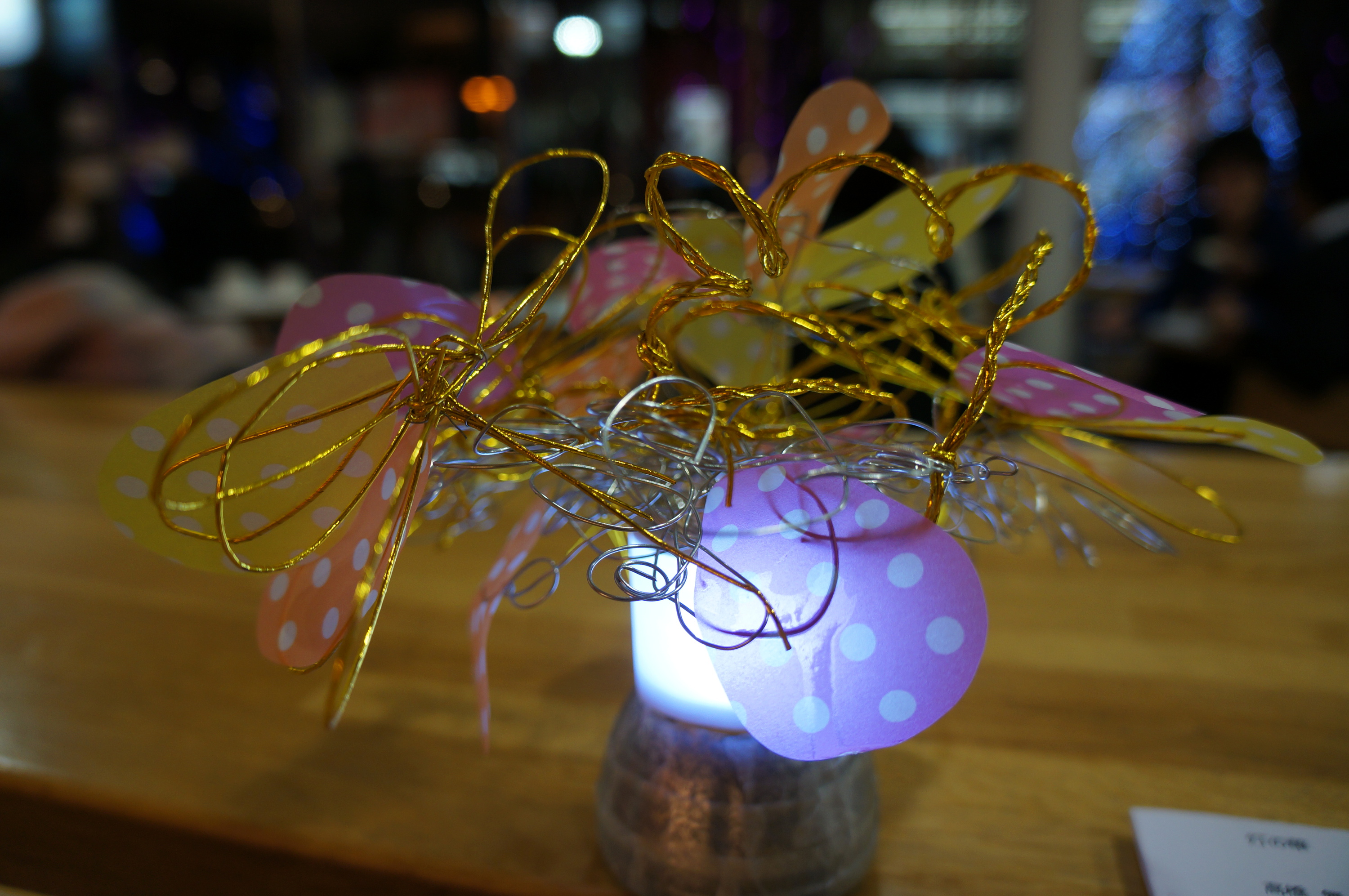広島大学キャンパス内にあるマーメードカフェ広島大学店にて、現在、造形芸術系コース2年生(24生)を中心とした学生有志が、「あかり展」を開催しています(20日まで)。クリスマスイルミネーションと相まって、素敵な夜を演出しています。会期は残りわずかですが、お近くの方、コーヒーを飲みながら、作品鑑賞してみては如何ですか?今の季節にぴったりのイベントです!