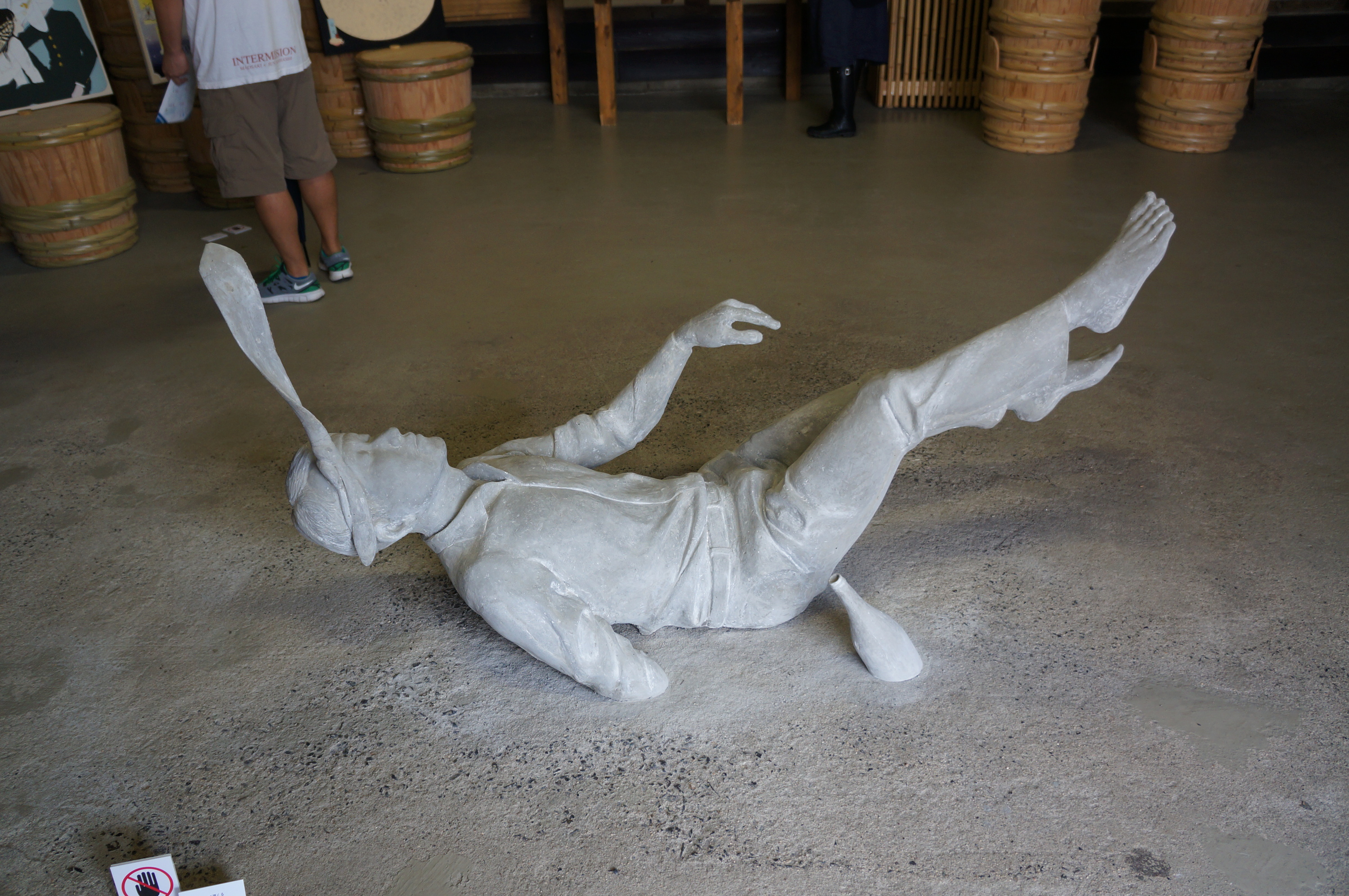 9月1日まで開催されていた「ART in 酒蔵」。彫刻研究室の村上佑介君(D3)の、酔った男性をモチーフにした彫刻作品が、酒蔵の床と同化するように展示されていました。場と素材との融合を試みた意欲作です。