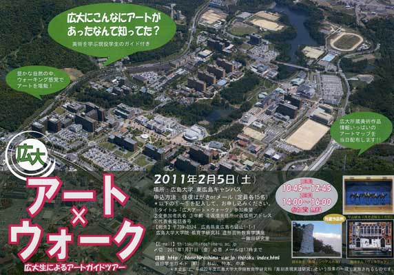 大学院授業「彫刻表現実践研究」受講生3名が、「広島大学所蔵の美術作品を本学内外にアピールするとともに,広島大学の学生によるアートガイドをとおして地域交流を行う」ことを目的として、ツアーを企画しました。当日、2回に分けたツアーでしたが、どちらもたくさんのご応募をいただき、盛況のうちに終了しました。当日の様子はNHK広島でも取材、放送されました。