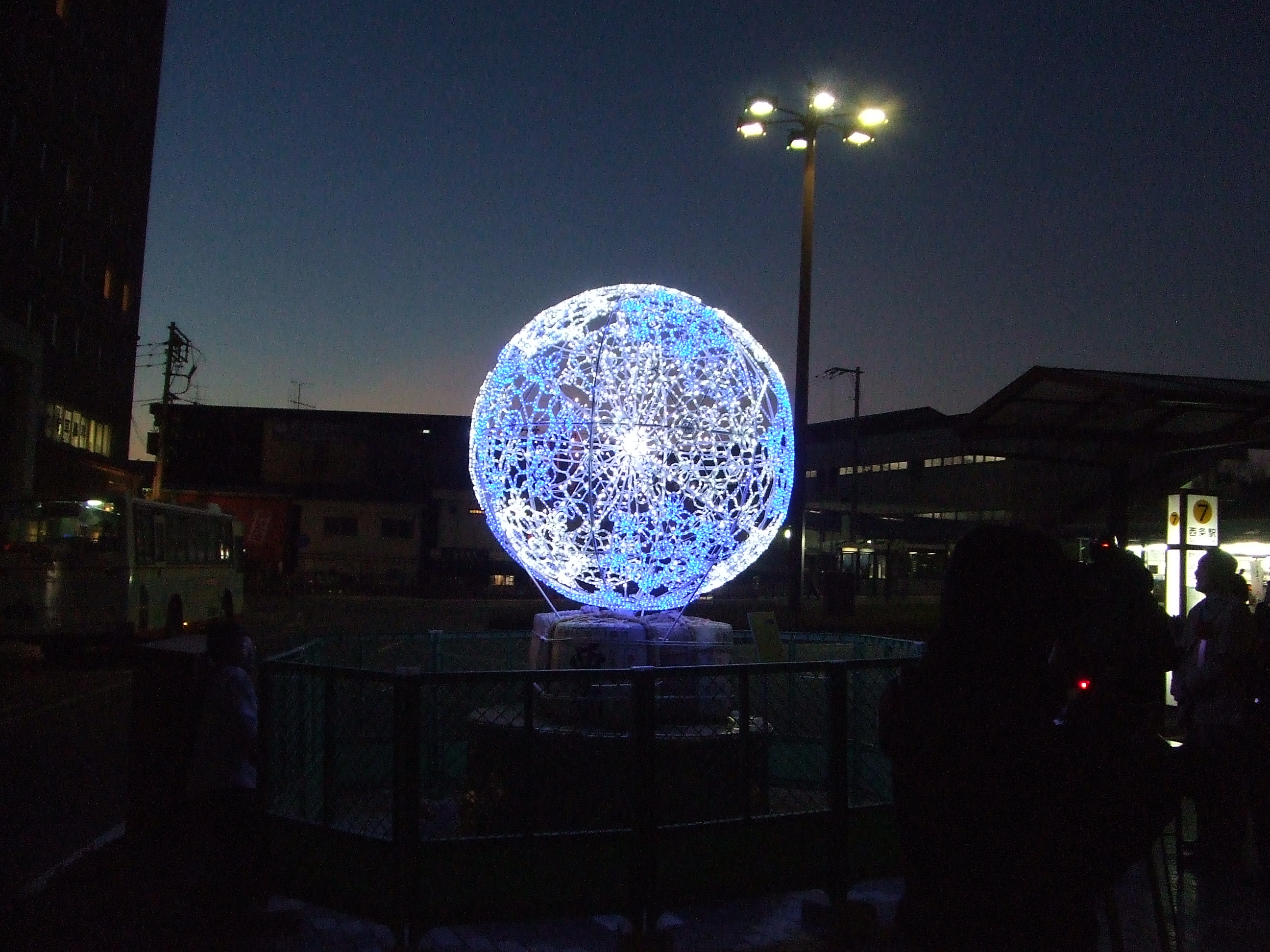 JR山陽本線、西条駅前に、イルミネーションの企画が持ちあがり、学生がデザインを担当しました。