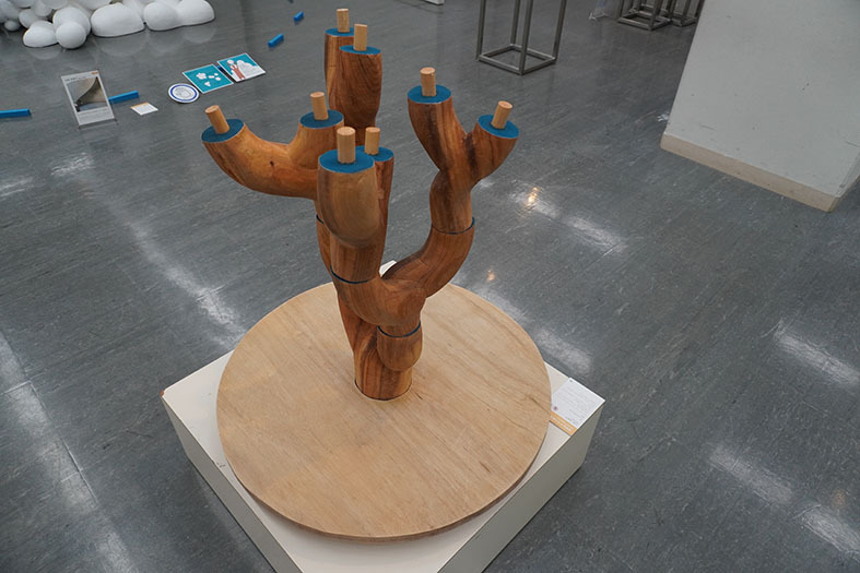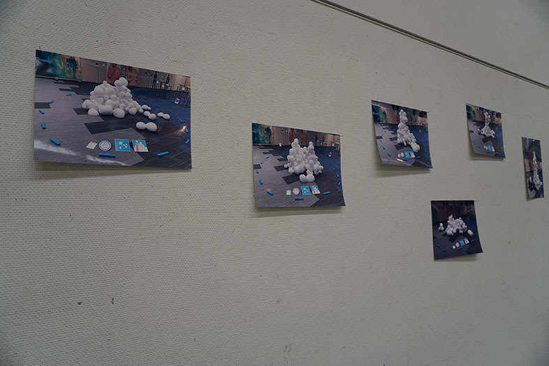 ②『あの夏に見た雲を積んでみる』(φ4000 サイズ可変, 発泡スチロール・塩化ビニルパイプ・木)