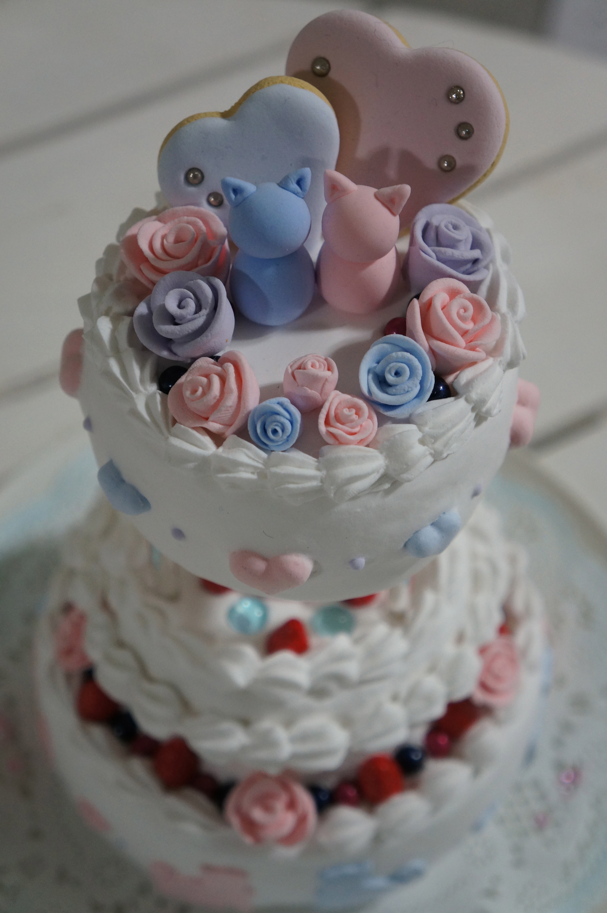 学生作品①(写真左)「〜猫好きカップルのためのウェディングケーキ〜」大宅健太郎さん