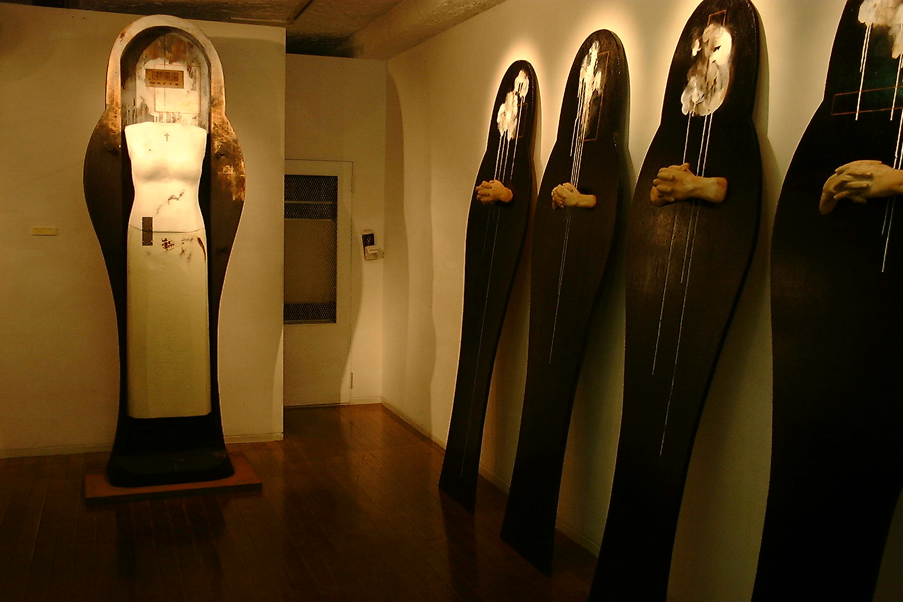 この問題に対する様々なアプローチの中から、私は自分が携わっている彫刻を通して考えてみようとしました。「生と死のリアリティー」をキーワードに現代、情報、流行などについて私なりの方法で造形化しようと模索した結果が今回の展覧会です。甚だ拙い仕事ではありますが、ご高覧いただければ幸いです。