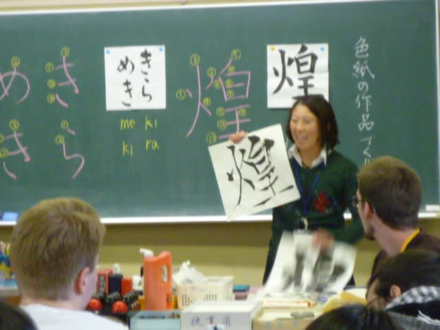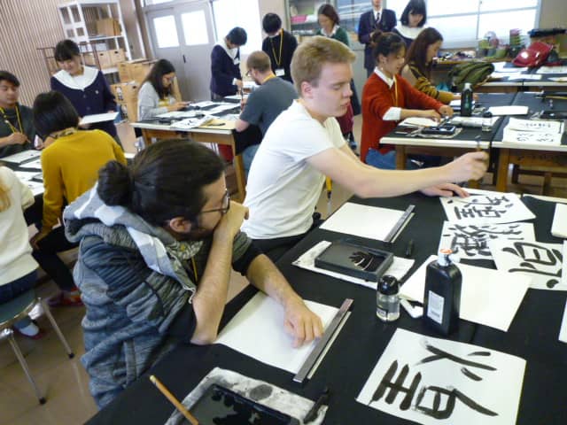 書道にも挑戦! そして対面式ではホストファミリーの皆様に暖かく迎えられました。楽しい思い出をありがとうございました!