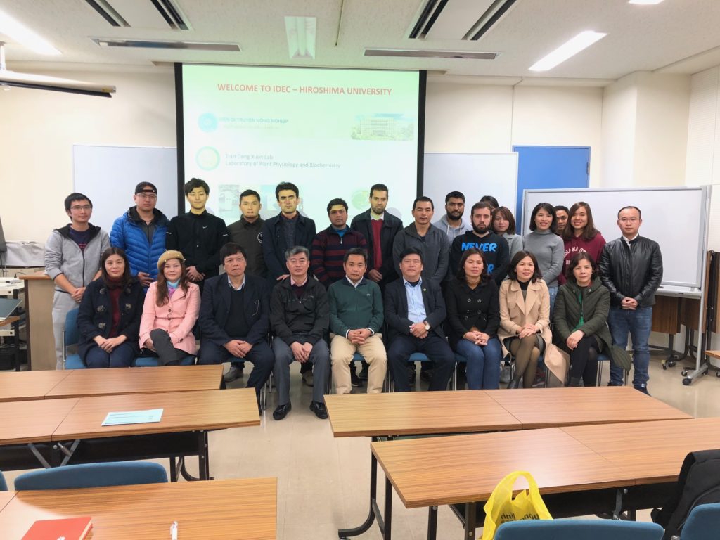 To day, there is a delegation of Vietnamese researchers, from Agricultural Genetics Institute, Vietnam have visited and joined the seminar in our Laboratory. Prof. Tran Dang Xuan, the head of our Lab, has presented an introduction about Laboratory of Plant Physiology and Biochemistry. Then Mr. Nguyen Van Quan reported his findings about the anti diabates of momilactones A and B in rice grain. The open discussion with students and AGI researchers was then held in 30 minutes. Topics involved in rice breeding, natural products and their biological activities such as allelopathy, medicinal and pharmaceutical properties.