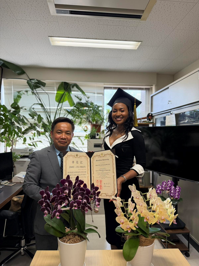 Lovisa Panduleni Johannes studied for her doctorate at the Graduate School of Advanced Science and Engineering, Hiroshima University. She published 5 scientific papers, participated in 2 scientific conferences, and received 2 awards from Hiroshima University (2024 2nd Semester HU Leader Program Excellent Scholarship; Hiroshima University Excellent Student).