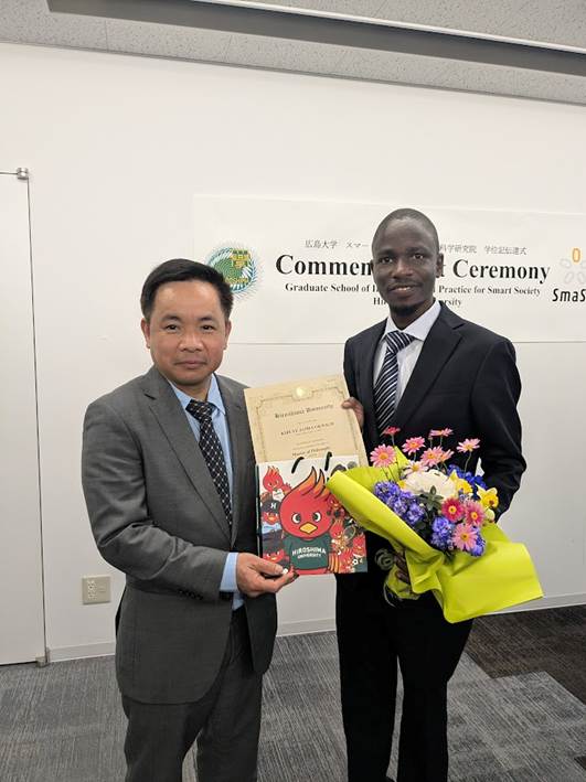 James Kibuye completed his master’s degree in 1.5 years at the Graduate School of Innovation and Practice for Smart Society at Hiroshima University. He has gained the Best Poster Award at the AY2025 Fall Semester Degree Thesis Interim Report Session.